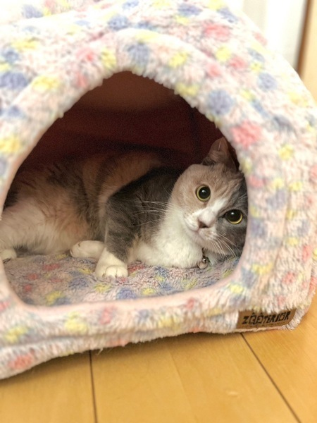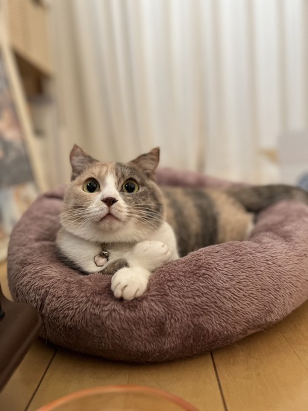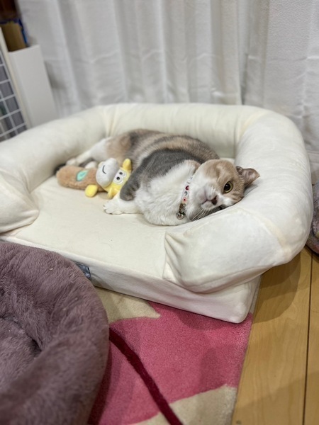| 特徴(性格など) | のんびりでおっとりで臆病な女の子。 抱っこは苦手ですが撫でられるのが大好きですぐにゴロゴロ喉を鳴らします。 静かにひとり遊びをしたりします。 大きなまん丸お目目とパステルカラーがチャームポイントです。 |