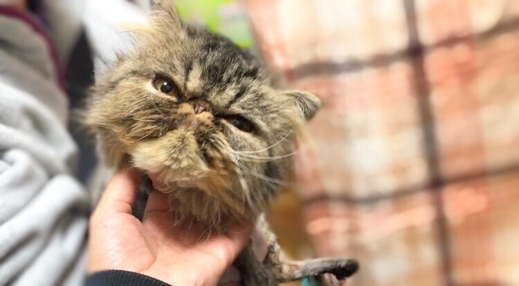 | 特徴(性格など) | 〜愛嬌たっぷり♪鼻ぺちゃペルシャの男の子ぺったんくん〜 何の生き物?!というくらい、とっても可愛いです(*^^*) 酷い飼育環境の様だった為、身体中毛玉の塊で保護されて来ました(;_;)なのに人が大好きです(;_;) フリーにしたら元気に走り回ってくれますが 、後ろ脚が細く筋力が付いていないのか上下運動ができません。 今はケージに入ってもらっていますが ケージから出してあげれる時間も限られています。自由に走れ回れる、お家の家族に迎えてくださる方を大募集です。 ぺったんくんを今度こそ幸せにしてあげてください。どうぞよろしくお願い致します。 |
