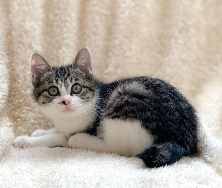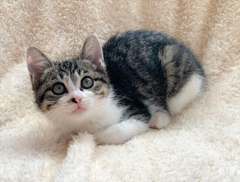 | 特徴(性格など) | 【仮名】モックちゃん 【性格】 コロコロまるまるムチムチでヌイグルミのようなモックちゃん♪ お兄ちゃんと比べるとちょっと控えめですが、 撫でればゴロゴロいえるおりこうさんデス♪ 保護して間もないためおひざはまだ練習中ですが 皆さんの愛情ですぐにスリゴロの立派なオウチニャンコになる事でしょう♪ おもちゃ遊びは大好きですよ♪ ロックくんといつも一緒に過ごしているので 2匹でのお迎えをお願い致します♪ ※1ピキ譲渡不可 |