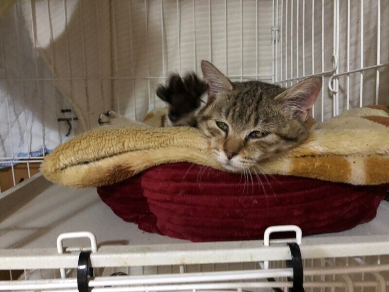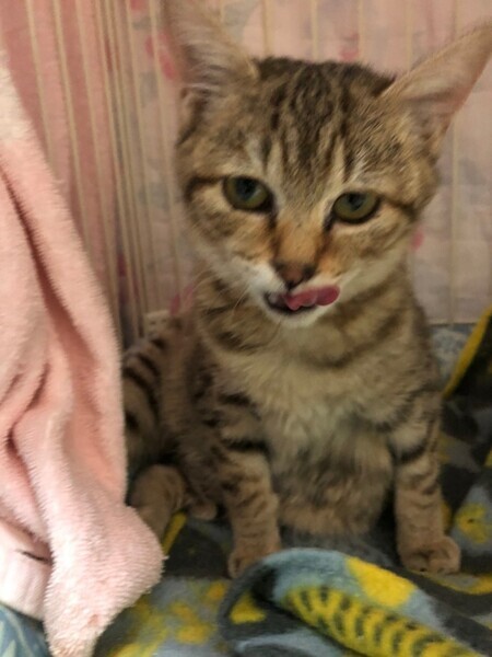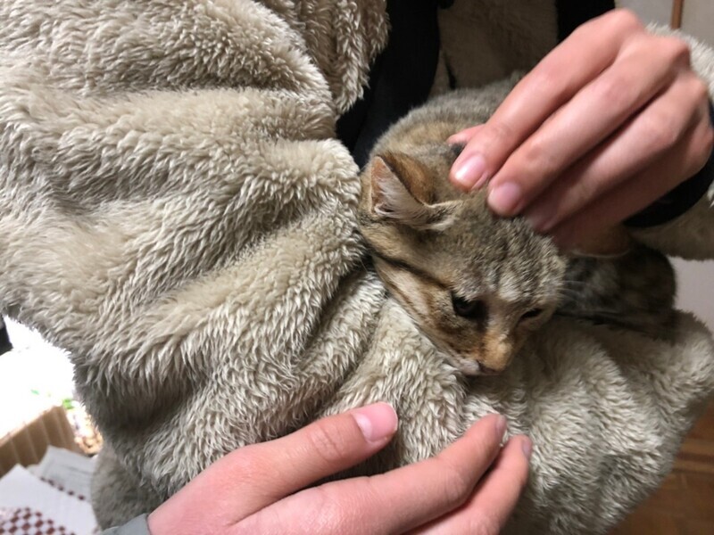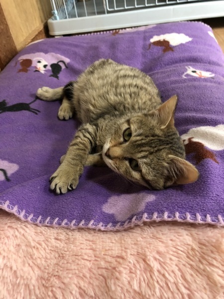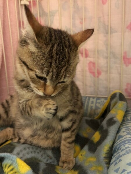 | 特徴(性格など) | 保護当時、後ろ足を引きづっていました。病院で検査の結果、後ろ足の膝を骨折しているが、極端に痛がらないのでこのまま骨融合が望ましい、という診断でした。 まだ足は引きずっていますが、元気いっぱい走り回っています♪ 施設のお部屋が楽しくてしょうがない様子で、おもちゃや他の猫ちゃんのしっぽで遊んだりと子猫らしい無邪気さがとてもかわいいです。 人懐っこくて抱っこも大好き。とってもかわいい実衣ちゃんにぜひ会いに来てください♪ |