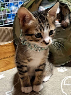 | 特徴(性格など) | ☆★☆★現在お見合い予定がございます☆★☆★ 仮名を『ゼクス』と言います。 キジ白の男の仔です。 センター収容猫です。 目も開かぬ生後1週齢ほどの時にセンターに持ち込まれた3兄弟のうちの1頭『ゼクス』です。 兄弟の中で身体が1番大きくしっかりしていて、長男的存在?!です。 ミルクボランティアさんが、人間の赤子を育てるのと同じように、2時間おきのミルクや排泄介助、それはもう手塩にかけて育ててくれました♪ お膝に自ら乗ってくる抱っこ大好きな甘えん坊さんになっています。 まだ小さな仔猫ですので、兄弟一緒のご縁を先ずは探したいと思っています。 幼い時期に兄弟でじゃれあったり寝食を共にすることで、猫の社会性も身につきます。 年齢がさほど離れていない先住猫さんのいらっしゃるお家でしたら、それぞれ別々のご縁も視野に入れていますのでご相談くださいね。 もうドライフードもしっかり食べていますが、お留守番時間の短いご家庭へお繋ぎします。 愛らしいゼクスに会いに来てください★ 【医療処置情報】これから実施のも含まれます *健康チェック *3種混合ワクチン接種 (年1回定期的にしております。詳細はお見合い時にお知らせいたします) *ウイルス検査実施(FIV.FeLV共に陰性) *検便実施 *駆虫薬投与(レボリューション、ドロンタール) *マイクロチップ装着 *不妊・去勢手術 |