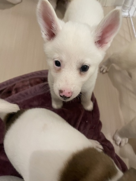 | 特徴(性格など) | 中型犬雑種 成犬時15キロくらいにはなるかと思います。 ♀ 生後1か月半くらい 懐こく可愛い子です。 ワクチン1回目を打ってからのトライアルになります。 |