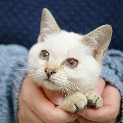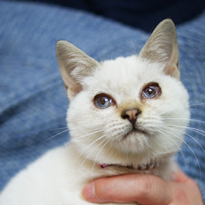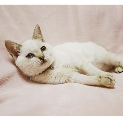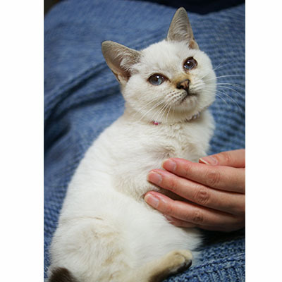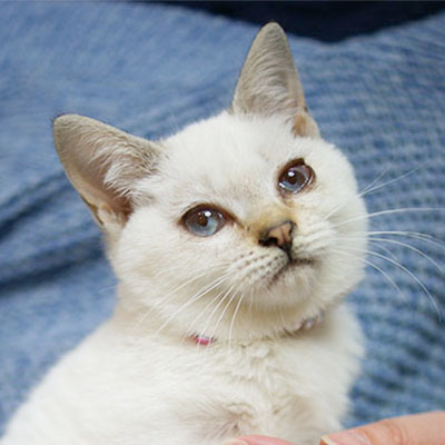 | 特徴(性格など) | 社交的でお友達に対していつもフレンドリー 転じて行き過ぎるとお転婆さんで向こう見ずな時も!? 添い寝してくれる甘えん坊さん 美女ですが 声は渋いというアンバランスさも魅力です 風邪による重度の結膜炎があったため 片目の瞬膜が癒着していますが視力に影響はしていません 不妊手術の際に除去することが可能です |