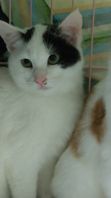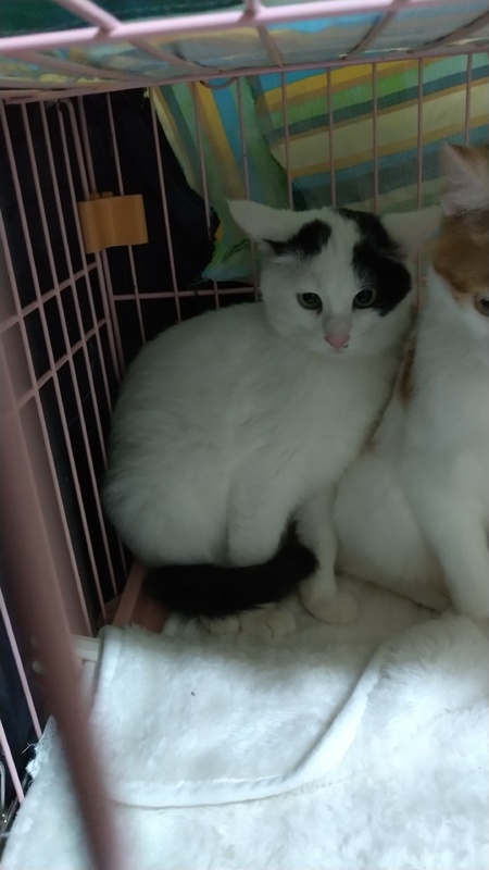 | 特徴(性格など) | 白黒の女の子。 シャーシャーと猫パンチが出ますがすぐ馴れそうです。 |