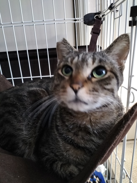 | 特徴(性格など) | キジトラ、オス、去勢済み。 エイズ白血病陰性。 穏やかな甘えん坊。 抱っこもできます。 |