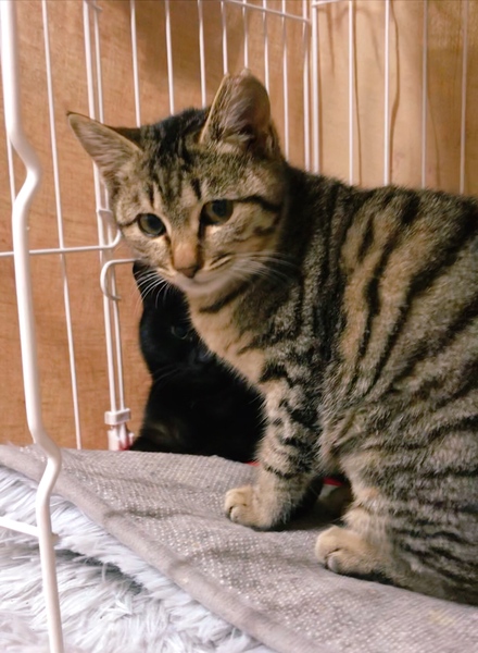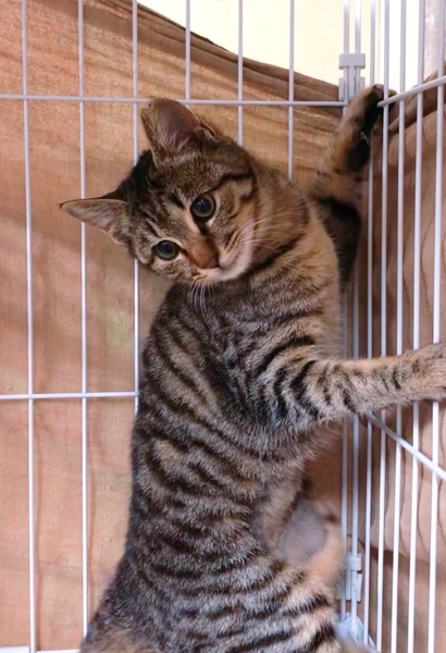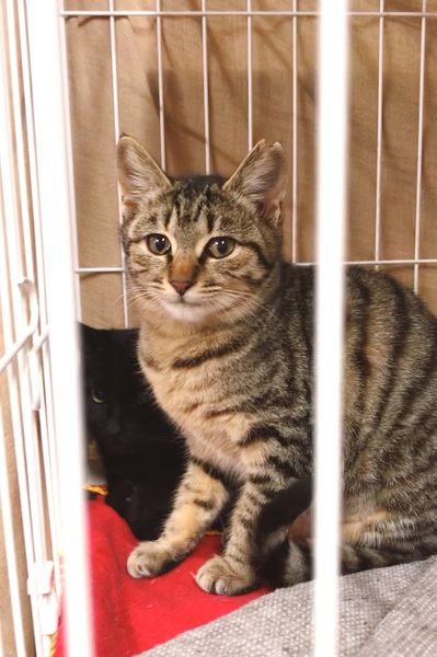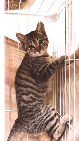 | 特徴(性格など) | タレ目でどことなく切なげ〜な表情がとても愛らしいももちゃん。 きれいな縞模様のキジトラちゃんです。 まだちょっとビビリですが、攻撃性はまったくありませんので、懐くまで時間はかからないと思います。 元気いっぱいで、好奇心旺盛♪ 穏やかで甘えんぼになりそうなももちゃんです。 |