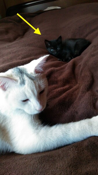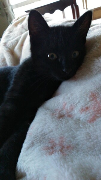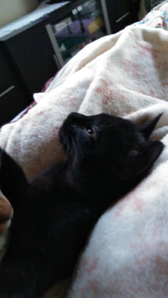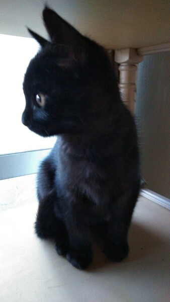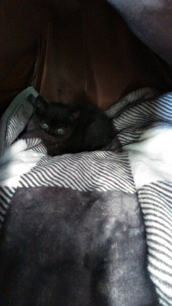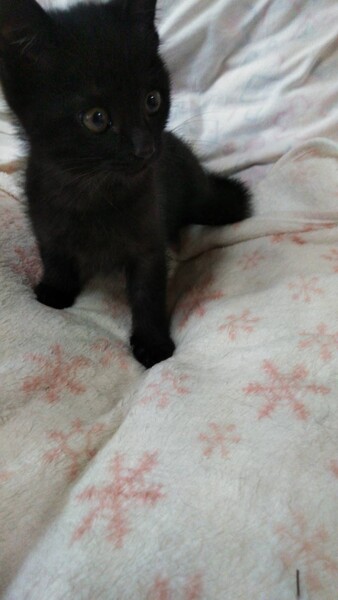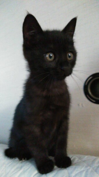 | 特徴(性格など) | 飼い主不在を確認済み。 推定年齢3ヶ月未満。生後1ヶ月くらいだと思われる頃、溝で1人鳴いているところを救助。 とても甘えん坊で活発な子猫です。毛色は黒の短毛。 一緒に生活している我が家の猫と年齢9ヶ月前後と思われる里親募集中の兄妹と共に、甘えたりヤンチャしたり、好奇心いっぱい!元気に走り回って生活している可愛い子猫です。 |