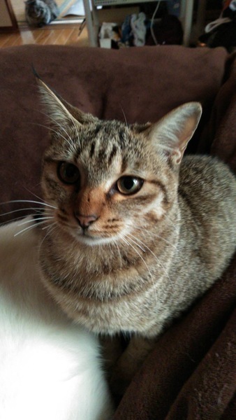 | 特徴(性格など) | 飼い主不在を確認済み。 年齢推定9ヶ月前後。お母さん猫に連れられまだ小さな子猫の頃2匹の兄妹猫と我が家に突如現れました。 色柄は短毛のキジ。少しシャイだけど本当は甘えたい、活発で元気な美人さんです。白猫の兄妹とずっと一緒に育ち生活をしてきたので、2匹一緒に家族とし受け入れてくれる方を希望していますが、1匹づつ兄妹別々でも、どちらにしても一生家族の一員として大切にしてくださる方を募集してます。 ◆健康状態 血液検査は全て陰性で健康です。白い兄弟猫と我が家の先住猫と3匹で元気に走り回って遊んでいます。 |