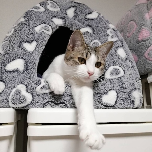 | 特徴(性格など) | 推定2022年5月10日生まれ、キジトラ白の仮名・蒼(あお)くん♂です。 蒼くんはずばり、構ってちゃん! 私が動くと、後ろをついて歩くわんこのような猫さんです(笑) 名前も理解していて、呼ぶと別の部屋にいても、別の階にいても、おしゃべりしながらかなりの確率で駆けてきます。 我が家の他の猫の名前を呼んでも…、寄ってきます(笑) 蒼くんは毎日元気に走り回り、探検をし、時にいたずらをしてのんびり過ごしています。 真菌治療中の3週間ほど、ひとりきりで隔離部屋で耐えた蒼くん。 隔離を解いてすぐは、我が家の成猫に飛び掛かってうざさ(笑)を発揮していましたが、ほんの数日で猫付き合いも上手になりました。 食事につきましては、現在兄妹に比べちょこちょこ食べです。 フードに関してきっちり管理いただける方を希望します。 また蒼くんはおしゃべりで声も大きめのため、音に敏感なご家族様や、隣室の音が大きく響く住環境のご家族様には向かないと思います。 保護主のわがままで誠に申し訳ございませんが、猫付き合いも上手なため、蒼くんの兄妹のペプちゃん♀かしおくん♂(今回の譲渡会は不参加)、または一緒に譲渡会に参加しますトコちゃん♀とのペア譲渡を希望しています。 里親様には目に見える形での脱走防止対策の徹底(よろしければ私も一緒に考えます!お部屋の写真や間取り図を持参いただけると、より具体的なお話ができると思います)と、家庭内事故を防ぐため、安心安全清潔な住環境を必須でお願いしています。 保護主Instagram https://www.instagram.com/maruchiyo78 |