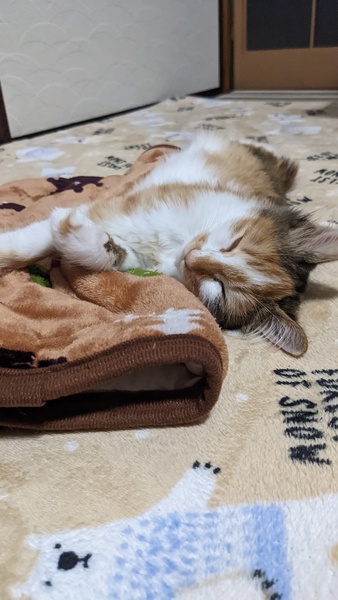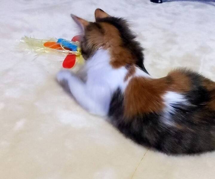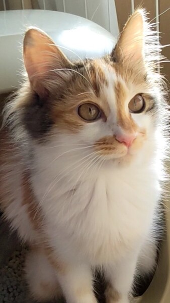 | 特徴(性格など) | 三毛猫MIXの長毛。遊び大好きな甘えん坊。遊びなから前転(でんぐり返し)が大好きな猫ちゃん | ||