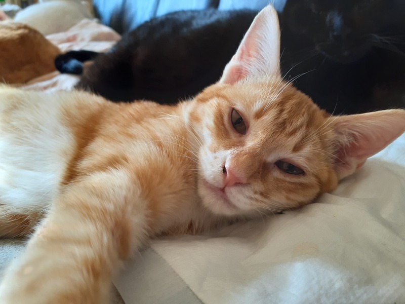 | 特徴(性格など) | 茶トラ5匹兄弟姉妹で保護しています。兄弟の中で 一番大人しく穏やかな性格です。 いたずらもせず、落ち着きがあります。 兄弟がオモチャで遊んでるのを 控えめに眺めているタイプです。 人馴れしていて先住犬、先住猫たちにも慣れています。 どの子とも問題なく仲良くしています。トイレは、トイレシートにできます。 爪切りも大人しくできます。 |