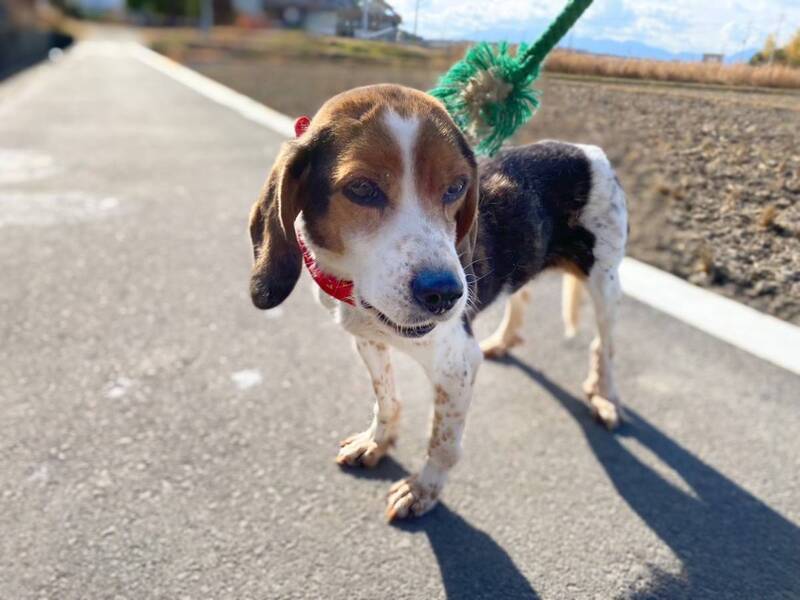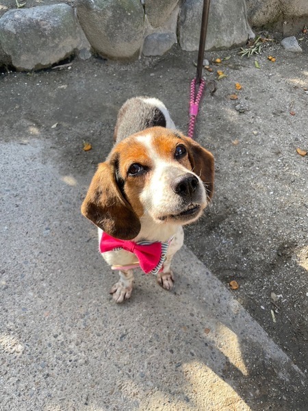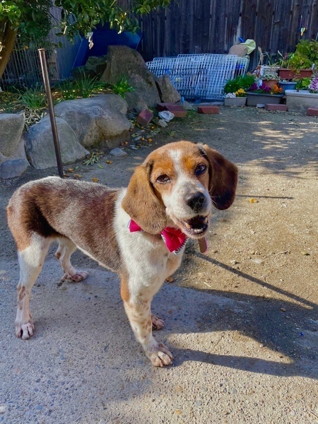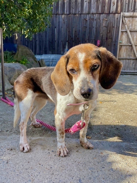 | 特徴(性格など) | 10キログラム。ビーグルの女の子です。 元猟犬のため、動くものを見ると吠えて知らせてくれます。「教えてくれてありがとう、もう大丈夫だよ」と伝えると吠えなくなる、賢い子です。 お外が大好き! 年齢を感じさせない足取りで、お散歩もぐんぐん進みます。 濃い茶色と、手足の斑点が特徴的です。 甘えん坊で、すぐにゴロンとお腹を見せるかわいい一面も……! 後輩ビーグルにも優しく、尻尾をブンブン振って一緒にお散歩もします。 抱っこも撫で撫でも嫌がらず、人や他の犬を噛もうとしたことはありません。ゲージでもおとなしくすごし、おしっこでお部屋も汚しません。(外でするタイプです。) 8歳という年齢と、吠えるからという理由で、なかなか声がかかりません。 春の里親さんになっていただける方、ぜひ一度会いに来てください。 ※少しでも気になられましたら、ご連絡ください。 より迅速に対応させていただくため、差し支えなければ最初のご連絡で、 「お電話番号と大体のご住所」をお書き添えください。 ※対面でのお見合い必須です。遠方でも応募可能ですが、必ず一度は会いに来て頂くようお願いします。 ●単身者でお留守番の時間が長い方でも、条件しだいでは譲渡可能ですので、まずはご相談ください。 ●シニア世代の方でもご応募可能です。 |