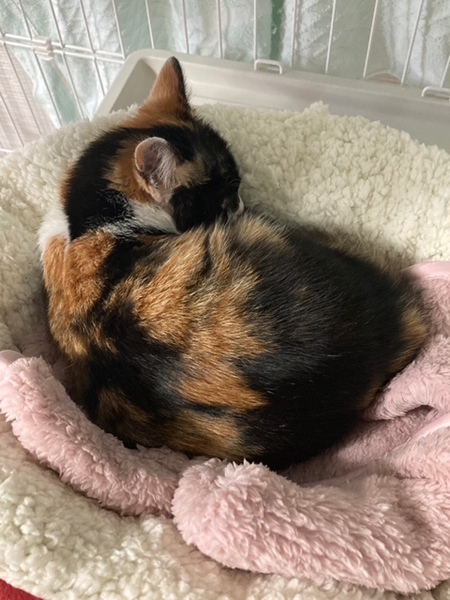 | 特徴(性格など) | <初期医療> 健康状態:良好 白血病ウイルス検査:陰性 エイズウイルス検査:陰性 ワクチン接種:済み ノミダニ駆除薬:済み 糞便検査:済み とても可愛い三毛猫の子猫です。フードもよく食べ、トイレもバッチリです。 三毛猫らしい綺麗な模様で、お腹は白いです。 人馴れも抜群で、ゴロゴロです。甘えん坊で抱っこも大好きです。 保護した時にお顔に複数の傷があり、お薬で治療して治ってきました。 お留守番もできますが、子猫なので、なるべく少ないお家を希望します。 先住猫のいるお家でも大丈夫です。 |