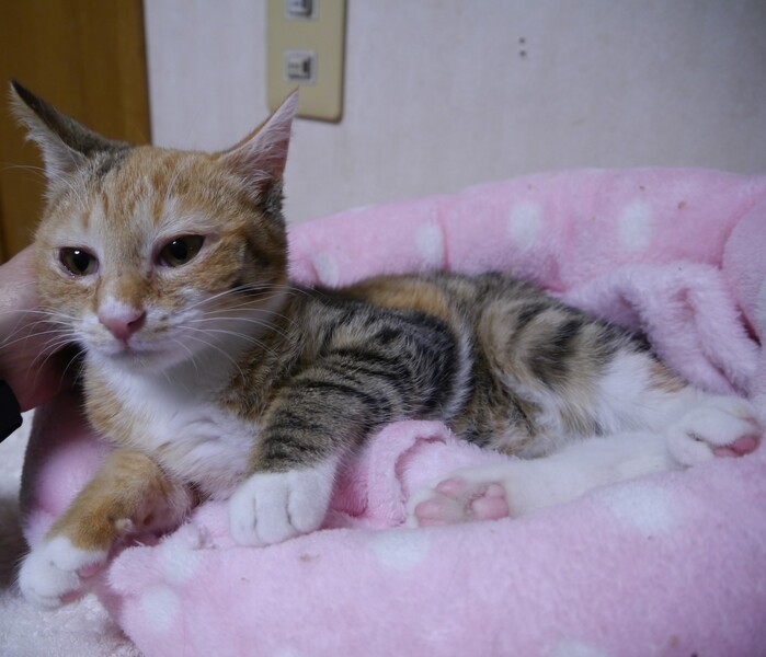 | 特徴(性格など) | 白たび履いている三毛猫の女の子 シマシマのあるサビ縞柄は入っています 人への警戒心はなくてお転婆さん ダッシュが得意です |