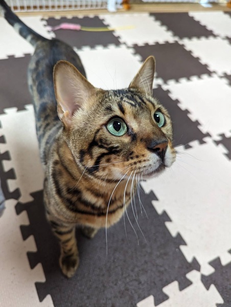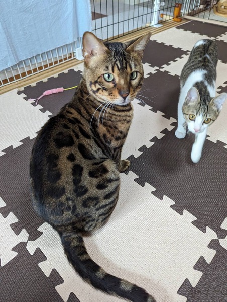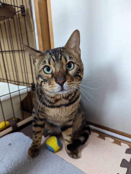 | 特徴(性格など) | 種類 ベンガル 年齢 推定2歳 体重 5.2キロ 性格 人懐っこく甘えん坊です トイレ システムトイレ 日常の様子 とても甘えん坊で、撫でられるの好きです ブラッシングも大好きでヘソ天したり、スリスリしてきて人が大好きです じゃらしやボール遊び、ベンガルらしくとても活発でジャンプ力もすごく運動神経抜群です お手入れ シャンプータオルでこまめに拭いて、ブラッシングで清潔を保ってください フード ニュートロ 健康状態 抗体検査 (FIV・FeLV)マイナス ワクチン 3種混合接種済み 避妊・去勢 去勢手術済み その他 触診・血液検査・検便異常なし、駆虫薬投与、ノミダニ駆除済み ★ミミダニがいたので、レボリューションで駆除済みです |