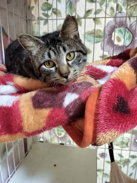 | 特徴(性格など) | キジトラの縞模様が綺麗な猫ちゃんです。とっても穏やかで抱っこも大好きです。 尻尾は長くてスラーとしています。 |