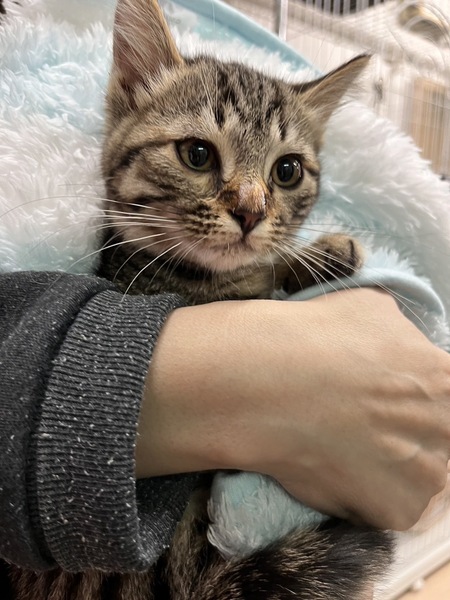| 里親募集する理由 | 外にいて風邪をひきぐったりしているところを保護しました | ||