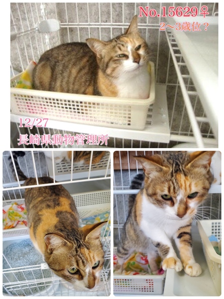 | 特徴(性格など) | まだ1歳前後位と2〜3歳位と見受けられる生とっても可愛い人馴れ抜群のミケちゃん2匹です♡(親子か姉妹かは不明です) ♡No.15629 とても人馴れしていておっとりした優しい子。撫でると気持ち良さそうに甘えてくれます。体重3.8キロで尻尾は長くて真っ直ぐです(^^) 推定になりますが2〜3歳位でしょうか。 ♡No.15630 この子も人馴れバッチリのおっとりちゃん。 小柄で体重は2.6キロ(まだ1歳未満で成長途中なのかもしれません)推定1歳前後位、尻尾は短めで曲がっています。 どちらの子も抱っこも大丈夫♪猫砂でのトイレも出来ています。 この子達ならきっとじきに新しい家庭に馴染んでいけると思います♡ ⭐️完全室内飼育で、譲渡後速やかに病院受診、健康診断、混合ワクチン、避妊手術をする事が可能な、なるべくお留守番の少ない沢山優しく触れ合っていただけるご家庭。 ⭐️新しい環境に慣れるまで、もしかしたらトイレの失敗などあるかもしれませんが覚悟と根気・理解で受け入れて下さる方m(_ _)m ※混合ワクチン、ウイルス検査実績はありません。エイズや白血病陽性等の可能性も0では無くあり得ることとなります(>_<) 以上の点を踏まえ、この子の置かれている状況、寂しくて不安もいっぱいであろう心をご理解のうえ、全て受け入れ寄り添っていただけるご家庭で終生可愛がっていただきたいと祈っております。 収容された全ての子達は、身勝手な人間による被害者であり、何も悪くありません( ; ; ) 家族の一員として生涯大切にしてくださる優しいご家庭とのご縁が結ばれ幸せになれます様にm(_ _)m ☆⭐︎ 家族を必要としています。 のびのびと遊んだり、抱っこされてスリスリ目一杯甘えたりさせてあげたいです。 人間よりはるかに短い生涯です。元気に幸せに生きてほしいです。 この子達にどうか温かい手を差し伸べて下さい。 安心出来る、愛してくれる温かい家庭、当たり前の幸せを知ってほしいです。 まだまだこれからの命を、絶対に幸せに過ごしてほしいと願っています! どうか宜しくお願い致します。本当本物の家族になっていただけませんか。 ご連絡をお待ちしております♡♡ ◆健康状態 今のところ元気にしていてフードも食べています。 ※管理所では収容するのみ になり、健康診断やウイルス検査、ワクチンなどは一切行っておらず、トライアル制度もございません。 何か病気があるのか、無いのかも分かりません。 ※一度引き出して検査だけをする事も出来ませんm(_ _)m この子達の全てを丸ごと受け止め、終生愛情飼養で迎えて下さる方のみ への譲渡となります事をご理解、ご了承くださいませ。 収容動物の健康面の保証はございませんのでお迎え後は直ぐに病院でメディカルチェック、混合ワクチン、避妊手術を確実にお願い致します。 ※去勢、避妊手術は長崎県動物管理所より譲渡条件の1つになりますが、何らかの疾患が見つかり治療が優先、避妊手術が延期又は避けるとなった場合には年齢・健康状態を考慮の上獣医師の判断を仰ぎ、ご報告を頂いております。 ワクチン接種も同様となります。 (診断書を写真、もしくは郵送にてご提示して頂いております。) また、例えどんな病があろうとも最期まで責任を持って家族として迎えて下さる覚悟のある方でないと、保健所収容されている犬猫ちゃんの迎え入れは難しいです。。 何卒ご了承くださいませm(_ _)m ★逸走、脱走にはくれぐれもご注意願いますm(_ _)m 交通事故等、命に関わります! 病院へは必ずキャリーに入れて連れて行ってください。 ☆ノミマダニ駆除のフロントラインスプレー済みです。 ◆ワクチン接種、不妊手術の有無 未接種 未避妊(必ず不妊手術をする事をお約束頂いております) ◆引き渡し方法について どうか温かい手を差し伸べて下さい。 尊い命です。 ⭐️直接のお迎えが難しい場合や県外、遠方でも、譲渡の条件が合い、良縁に恵まれましたら引き出しや空輸、搬送など出来る限りの範囲内になりますがボランティアがお手伝いさせて頂きます。ご相談下さいませ! ⭐︎ご本人様確認の為、身分証明書が必要となりますm(_ _)m ⭐️ご応募〜譲渡までの流れ⭐️ 【①〜⑱アンケートにご回答】 ⬇ 【お名前、ご連絡先のご提示】 ⬇ ※ボランティアがお電話で譲渡誓約書や譲渡後のお願いやお約束事等について確認、お話をさせていただきます(^^) ⬇ 【身分証明書、飼育環境写真のご提示】 ⬇ 【管理所職員の方と面会かお電話で講習、意思・条件などの最終確認】 ⬇ 【引き渡し】 ※搬送やお迎え時にはエアトラベルキャリーケースかケージが必要になります。 搬送交通費、キャリーは里親様ご負担となりますm(_ _)m (キャリーはレンタルも可能です。後日返送して頂きます) ※譲渡後の幸せを真剣に願い、アンケートをお願いしております。 ↓お問い合わせ時にコピーペースト、もしくは番号順に箇条書きでも構いません。お手数ですが宜しくお願い致しますm(_ _)m お答え頂けない方、アンケート内容
