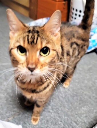 | 特徴(性格など) | ベンガル 体重:2.3キロ 性格:甘えん坊で人懐っこいです トイレ:トレーにて猫砂にします 日常の様子:スリスリして甘えてきます オモチャに興味を持ち静かに遊んでいます とてもフレンドリーで先住犬とも遊びます お手入れ :シャンプータオルでこまめに拭いて、ブラッシングで清潔を保ってください フード:ロイヤルカナン長毛とチャオ缶詰 健康状態 抗体検査 (FIV・FeLV)マイナス ワクチン 3種混合接種済み 避妊・去勢 避妊手術済み 聴診・検便 異常なし・ノミダニ駆除済み・駆虫薬投与済み 耳ダニがあり、投薬治療中 猫風邪をひいており鼻血混じりのくしゃみをしてますので治療中 |