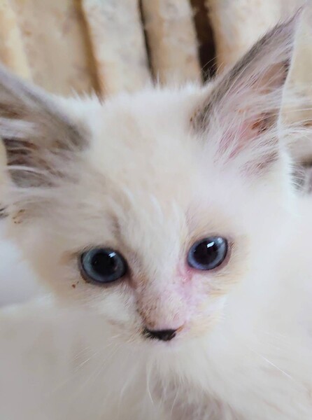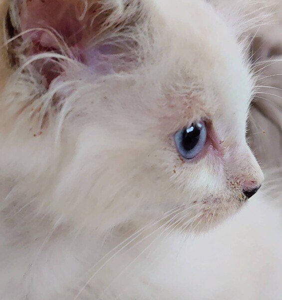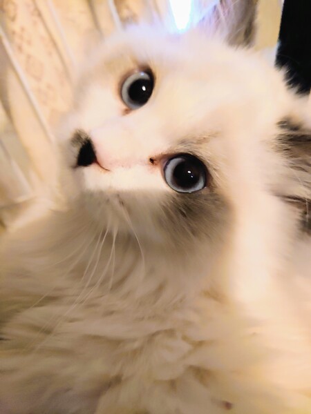 | 特徴(性格など) | 青い瞳に黒いアイラインがとても印象的なので、瞳ちゃん(仮称)と名づけました。 優しい女の子です。 母猫サイベリアン・ネヴァ・マスカレードと父猫ラグドールから生まれたミックスの女の子。 両親と同じで、青い瞳の長毛のブルーポイント。(今はほとんど白色ですが、両親猫のように(写真参照)、段々毛の色が濃くなり、毛も伸びてきます。)両親同様、もつれにくい毛質です。 顔は、バイカラー(鼻筋白の八割れ顔)とミティッド(鼻筋など顔の中心が濃い)のミックスで、全体的に鼻筋が白く、鼻先だけにちょこんと可愛い黒のチャームポイントがあります 両親ともに大型猫ですが、生後約5か月にしては、まだ小さめです。 小さい理由: 生後1か月頃に母乳からウェットフードに切り替え、その後、生後1か月半から2ヵ月にかけてウエットフードからドライフードに切り替える時に、瞳ちゃんと数匹の子猫が子猫用高級ドライフード「シュプレモ」を食べ物と認識できずにほとんど食べず、痩せました。 点滴と強制給餌を2週間以上続けて、瞳ちゃんは命が助かりました。(同胎の子で同じようにシュプレモを食べなかった子は、点滴と強制給餌にも関わらず、脱水気味で排便した時の腹圧の急変により2匹命を落としました。) 今回、いつも離乳期に食べさせているロイヤルカナンの子猫用ドライフード(前期)ではなく、体に良いと言われていた子猫用のシュプレモを食べさせていました。私は当初、子猫の具合が悪くてシュプレモを食べないのだと思っていましたが、獣医さんによると、シュプレモ(の味)が嫌いで食べなくなる子が最近多いとのこと。思っていたのと逆でした・・・ シュプレモには、「猫が本能で食べ物と認識しない果物など」が多数入っているため、母乳から離乳する生後1か月半の時期の子猫のうち何匹かは、食べ物だと認識できなかったようです。(一緒にいた当時生後3か月の兄猫達は既にドライフードを食べ物だと認識していたので、シュプレモのドライフードもバンバン食べていました。) 当時毎日、子猫用「たまの伝説541」を2缶、そして下痢が酷かったので下痢対策として、いなばの「乳酸菌入りウェット・パウチ」を2袋、瞳ちゃんに強制給餌しました。瞳ちゃんは生後2ヵ月半頃から著しく回復し、今では何でも(おそらく美味しくないシュプレモも今なら)食べられますが、それでも生後5ヵ月にしては少し小さいです。 人間に助けられたので、とても人懐こいです。 小さな頃軟便だったので、身体を綺麗にしてくれるシャンプーが大好きです。温かなお湯をかけられると、「あ~、気持ちいい~!」みたいな感じで、ゴロゴロ言って喜びます。 写真:1枚目から6枚目が瞳ちゃん。このうち、白っぽい写真が生後4か月頃のもので、セピア色のような写真は生後5ヵ月直前のもの。一生懸命食べて、この1か月間で随分大きくなりました。7枚目がパパ猫のラグドール(まだ毛色が濃くなっていない頃の写真)。8枚目がママ猫のサイベリアン・ネヴァ・マスカレード。 前述のように、瞳ちゃんの毛質は両親猫と同じで、もつれにくく毛玉はできにくいです。 ただし、毛玉ができにくいとは言っても、やはり毛が擦れると脇の下や足の付け根に毛玉ができることがありますし、ブラッシングは血行やリンパの流れが良くなって体に良いので、頻繁にブラッシングしてやってください。ブラッシングは猫と触れ合う機会にもなります。 万が一毛がもつれたら、ブラッシングを痛がってブラッシングを嫌がるようになります。ブラッシングできなくなって更にもつれてフェルトのように固くなると、ペット用バリカンでも刈れなくなります。この場合、麻酔をかけてハサミでカットすることになりかねません。大人しい猫でも、ハサミでカットすると皮膚を切る可能性がかなり高くて、万が一首の頸動脈などを切ると死ぬからです。 大抵の猫と同じく、瞳ちゃんも撫でてもらったりマッサージしてもらったりするのが大好きです。 いろいろな猫がいる多頭飼い(猫)環境で育ったので、猫ととても仲がいいです。 多頭飼いでわいわい楽しく育っていますので、必ず猫2匹以上(5匹以下)で飼ってやってください。 ペットではなく家族として飼ってください。 特にサイベリアンは犬的な性格もあり、家族思いで、飼い主が冷たいと早死にするとも言われています。 サイベリアンの血が1/2のこの子でできるかどうかはわかりませんが、サイベリアンにボール遊びを教えれば、犬のようにボールを取って来るそうです。 |