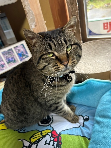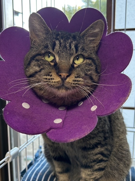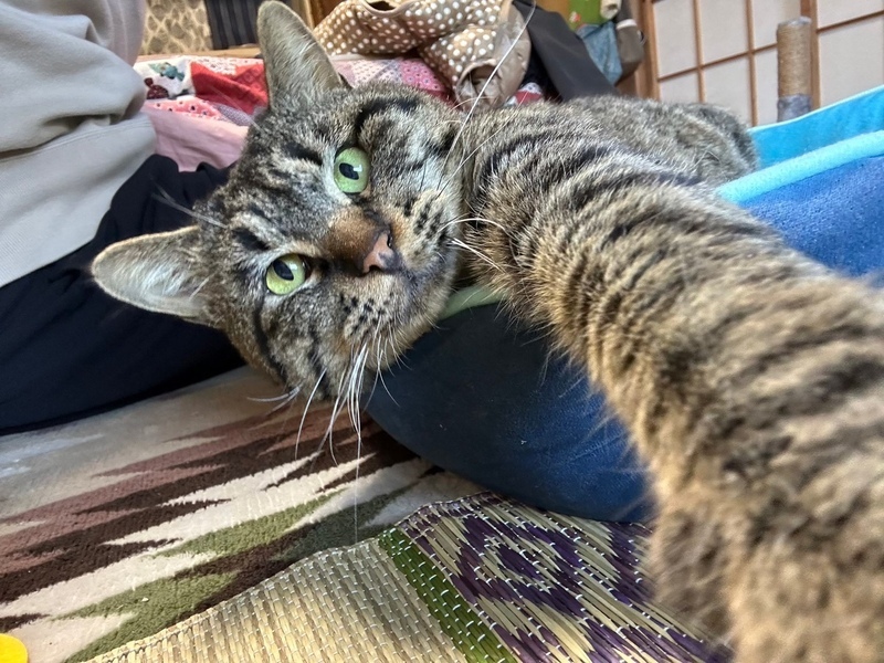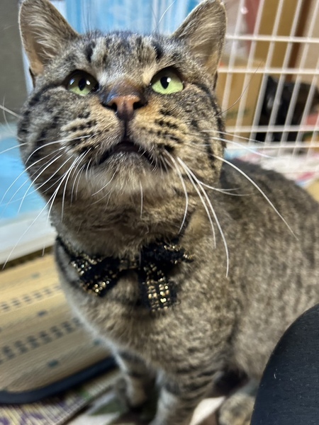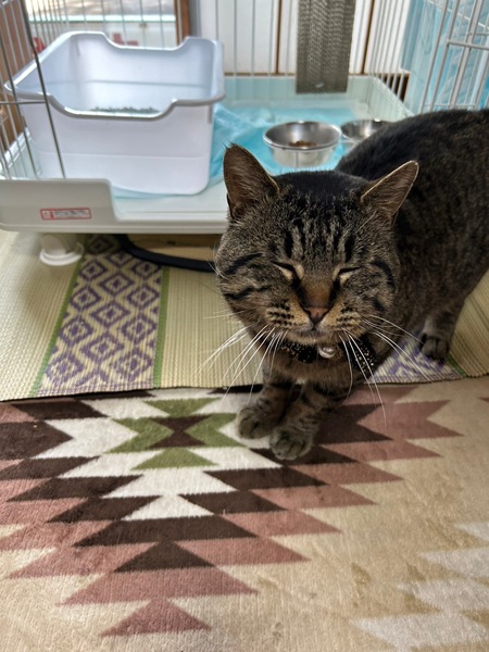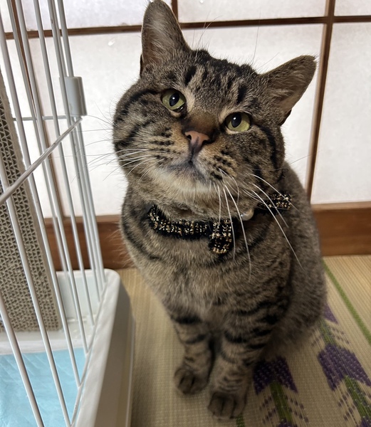 | 特徴(性格など) | キジトラ スリゴロ甘えん坊の顔デカ男子♥!! なでられるのが大好きで、顔に似合わず(?)かわいい声で、にゃ〜んと鳴きながらスリスリしてきます♡ 老若男女問わず誰にでも甘えん坊で、なでてあげると爆音でゴロゴロいいながら、ピッタリくっついてお昼寝したりしています(*^^*) 今のところ、じゃらしやおもちゃにはあまり興味がないようで、お外を眺めたり、お部屋を探索したり、お昼寝したりして過ごしており、比較的大人しく、落ち着いている性格のようです♪ 誰もいない時はケージに入ってもらっていますが、大人しくおりこうさんに過ごしてくれています☆ また食欲旺盛で、好き嫌いなくなんでも食べます! 保護時と比べて、だいぶふっくらしてきました(*Ü*)ノ"♡ お外にいた時は他の猫さん達と仲良く過ごしていので、先住さんのいるおうちでも問題なく過ごせるかと思います。 健康状態 ♥保護当時、何らかの原因でしっぽが切れてしまっており、とても痛々しい姿でした( ´•̥̥̥ω•̥̥̥`) 手術になるかな?と思っていたのですが、お薬での治療にていい状態になってきています(* 'ᵕ' )☆ ♥去勢済み ♥虫下し済み ♥検便済み ♥4.2kg ♥とっても元気です! ♥よく食べよく寝ています ♥尻尾はあと少し! |
