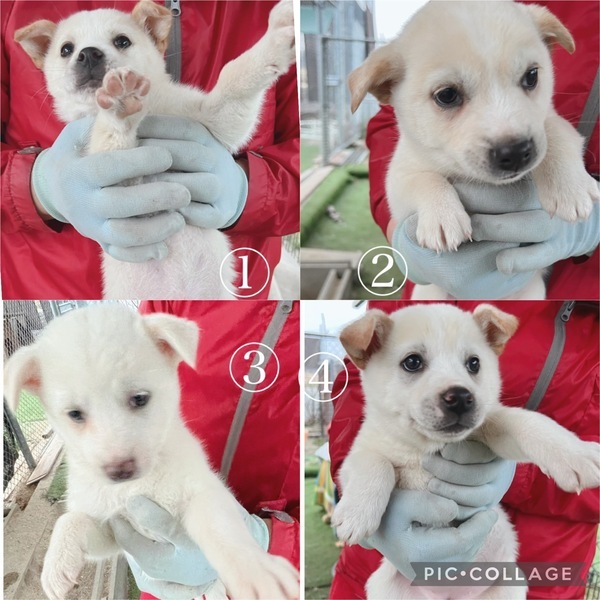 | 里親募集する理由 | 野良犬の子供ですが、とっても慣れています。親犬は警戒心が強いためにつかまりません。 子犬だけでも小さいので里親を見つけます。我が家はたくさんの保護犬がいる為まずは小さい子達から出します。 写真1番の子はしずくちゃんと3番nエルちゃんは決まりました。 2番はみぞれちゃん、4番はあられちゃん、仮名です。 |