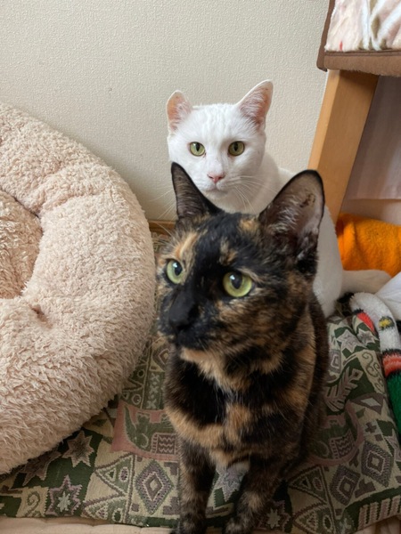 | 特徴(性格など) | ベンジャミン♀13歳です。サビ猫の小柄な女の子。目がクリっとしていてとても可愛いです。子猫の時からお家の子として育っていますのでとても人懐っこくスリスリゴロゴロの甘えん坊さんです。人がいないと寂しいのかよく鳴いてます。兄クヌート(白猫)13歳ととても仲良しです。ずっと一緒に育ってきた兄妹ですので引き離すのは可哀そうなのでできれば二匹一緒に譲渡したいと思っています。ご飯もよく食べ元気いっぱいです。 猫エイズ 陰性 白血病 陰性 |