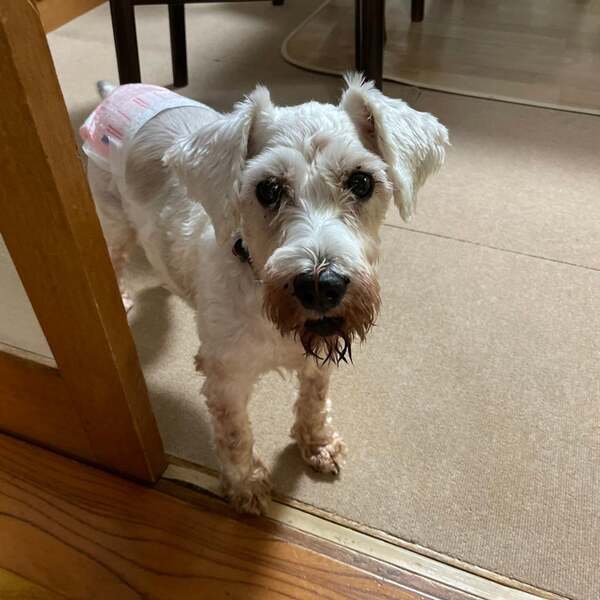 | 特徴(性格など) | ◆プロフィール◆ 【名前】 つみれ 【性別】 メス 【犬種】 ミニチュアシュナウザー 【年齢】 推定9歳 【毛色】 ホワイトまたは薄いシルバー 【体重】 7.4kg ◆性格・日常◆ 【性格】 急な動きはまだ怖がりますが人懐っこいです。興味を持って寄ってきます。ご飯が大好きです。 喜びで興奮しやすい一面もありますのでメリハリのある付き合い方をして下さい。 慣れるまでは落ち着きなく動きますが人が好きなので甘えれれば安心するようです。犬とも人とも遊ぶのが好きです。 【トイレ】 トイレシートは練習中です。お散歩でもします。最初はマーキングがあります。 【犬との関係】 大丈夫です。一緒に遊びたくて誘っています。 【猫との関係】 不明ですが大丈夫な気がします 【お散歩】 練習中。歩けますが色々なことに興味が多くて、歩くことに集中はしていません。 【留守番】 サークル 【就寝時】 サークル 【お手入れ】 爪切り、耳掃除、口周りを拭くなどは少し嫌がりますがやらせてくれます。毛が伸びたら定期的なトリミングが必要です。 【その他】 保護時、口腔内環境が悪く沢山抜歯をしました。犬歯4本しか残っていませんが食べることに不自由はありません。 人に甘えたい気持ちが強く、好きなだけ依存させてしまうと分離不安になる要素があります。 要求吠えにも繋がりやすいので、付き合いには適度な距離感を保った方がお互いに快適に暮らせると思います。 ◆これまでに行った医療◆ 【混合ワクチン】 5種混合ワクチン接種 【狂犬病ワクチン】 未接種 【血液検査】 異常なし 【フィラリア検査】 陰性(-) 【検便検査】 異常なし 【耳ダニ検査】 陰性(-) 【避妊去勢手術】 避妊済み 【歯石除去】 除去済み 【マイクロチップ】 挿入済み 【その他】 |