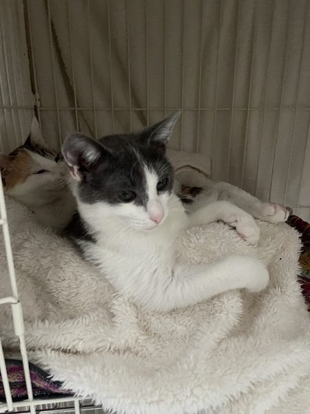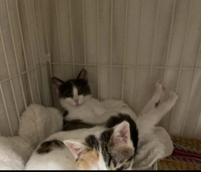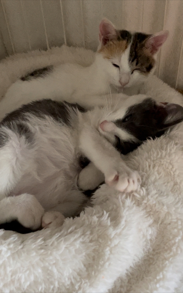 | 特徴(性格など) | ハチワレグレー オス 控えめで落ち付きがあり穏やかです。 三毛猫 メス 甘えん坊 2匹とも遊ぶの大好きです。 |