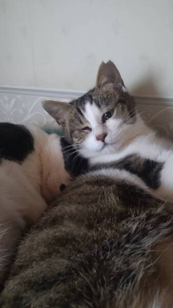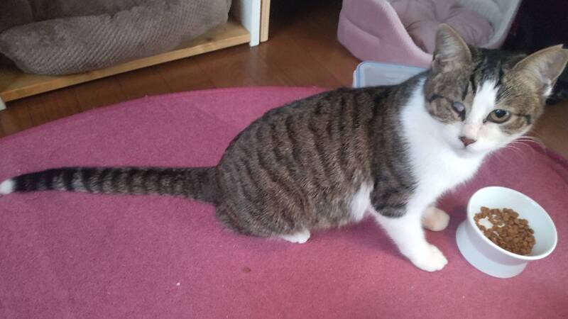 | 特徴(性格など) | 仮名)紅 キジ白の女の子 片目が何もみえていない状態です。 日常生活には支障はないです。 よく食べよく遊びます。 片目で外でここまで生きてきたので多少気の強い所があります。 他の猫とも追いかけっこしてます。 |