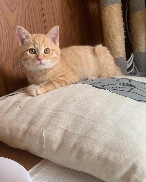 | 特徴(性格など) | 名前はおせんべい。 おおらかでマイペース、そして食いしん坊な、男の子です。 丸い顔とふっくらボディ(ぽんぽこおなか)が可愛いです。 甘えん坊で遊びが大好き。細かいことは気にしないタイプです。 カスタードクリームみたいな柔らかな色の茶トラ毛がとってもかわいいです。 きょうだい3匹の中で唯一、おもちゃで遊んであげる際、ほぼ100%、そのおもちゃを取って、持ってきてくれるスーパー天才子猫でもあります!笑 たくさん一緒に遊んであげてください。 人懐こくて、抱っこ大好き。 何をしても癒しと笑いをもたらしてくれる存在です。 ●月齢:推定3か月 ●性別:男の子 ●健康状態:良好。とっても元気です。 ●エイズ・白血病陰性、ノミダニ回虫すべて駆虫済み(ブロードライン ) ●トイレ指定の場所でちゃんとできます。 === きょうだいのチーたん(オス)とオリちゃん(メス)の紹介ページもありますのでぜひご覧ください(=^x^=) 生まれた時から一緒に育ってきた仲良しですので、きょうだいでのお迎え、大歓迎です。 |