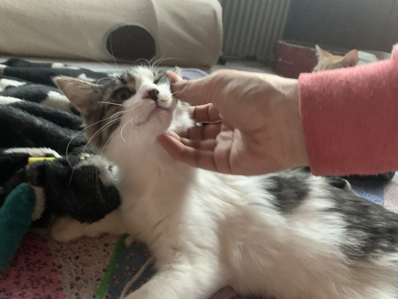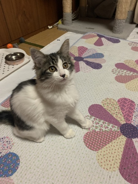 | 里親募集する理由 | 地域で愛されている野良猫のみーちゃんが生んだ子たちです。おばあさんが貸してくださった物置で離乳まで母猫に育てられ、その後、保護しました。 現在一時預かりしている家では他にも複数の猫がおりずっと飼うことはできませんので、大切にしてくださる家族を必要としています。 |