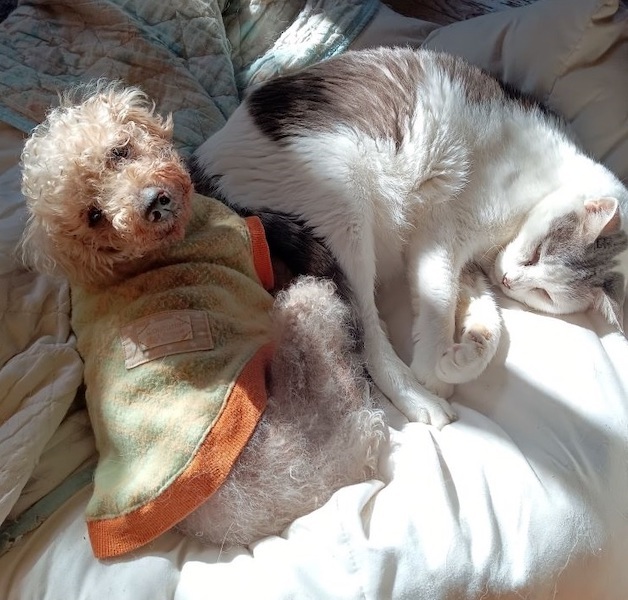 | 特徴(性格など) | トイプードルの『風(ぷう)』です。 (ちばわんホームページ掲載番号No.4496)←申込み時は犬の名前とこの番号を記載し、下記内容をよくお読みの上、必ずちばわんホームページからお申し込みください。 *「生まれた年月日」は推定です。成育環境によって誤差が生じることがあります。 【毛色】アプリコット 【体重】5.7kg 【状態】甲状腺及び腎機能低下、脱毛、フィラリア(ー)、マイクロチップ装着済、狂犬病予防接種済、ワクチン接種済、検便(-)、ノミ・ダニ駆除済 【人馴】問題なし 【性格・その他】お散歩が大好きな男の子です。 室内では寝ていることも多く、色々と健康面での問題を抱えていますが、具合が悪いとは思えない軽やかな足取りでお散歩を楽しんでいます。 あまり人との関わりがなかったのか、甘えたり一緒に遊んだりという素ぶりは見られませんが、少しずつアイコンタクトは取れるようになってきました。他の犬や猫には関心がなく問題なく過ごしていますが、元気な先住犬猫との暮らしは難しいかもしれません。 当初、風が近くに来ると異臭で気付くというほと口腔内が汚れていましたが、貧血がひどく全身麻酔下での歯石除去ができませんでした。貧血が改善されたところで歯石除去及び奥歯のほとんどの抜歯を行い、食べむらのあった食欲も改善され、しっかり食べられるようになりました。 現在、甲状腺に関しては投薬、腎臓に関しては療法食とサプリで対応しています。お薬はご飯と一緒に食べますし、食間に飲ませるサプリもお口に入れれば上手に飲み込みます。 頭部以外は脱毛が著しく、室内でも洋服を着せるなど保温対策が必要です。寒がりのせいか寝る支度を始めるとその時だけは目をキラキラさせながらお布団に潜りこんできます。 トイレは外派で、お散歩時と庭で済ませています。 今のところイタズラもなくお留守番も問題なくできますが、年齢的に人の手助けが必要になる日も近いと思いますので長時間のお留守番のない環境を望んでいます。 体調が悪いにも関わらず捨てられ、シニアになってからまた新たな家族を探さなくてはならなくなりました。一緒にいられる時間はそう長くはないかもしれませんが、たくさんの愛情を注いてくださる方とのご縁を探しています。 引き続きの室内飼育で、フィラリア予防や定期的なワクチン接種などの健康管理、脱走・逸走への細心の注意、住居等の脱走防止対策を必ずお約束してくださる関東圏内のご家庭で、終生家族の一員として風を大切にしていただける方からのお問い合わせを心からお待ちしております。 【預かり場所】神奈川県三浦郡 【日記】「チビスケんち」(インスタグラム) https://www.instagram.com/chibisukehaha/ 【申込】ちばわんの保護犬『風(ぷう)』への申し込みはhttp://www.chibawan.net/contactform _dogからお願いします。 |