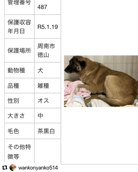 | その他(譲渡条件など) | ⚠️野犬ですのでマイナスからのスタートです 応募される前に必ずご家族の同意を確認されてからお願いいたします 《譲渡条件》 ◎単身者、高齢者の方は基本お断りしています (後見人がいる、飼育環境、状況により可能な場合もあります) ◎持ち家 ※マンションの場合10キロ以上(中型犬以上)、大きさや飼育可能頭数など大丈夫か飼育規約を必ず確認してください ◎完全室内飼育 ◎留守番時間の少ない家庭 ◎脱走対策(柵やゲート) ◎現地調査 詳しくはお問い合わせください ?安易に可哀想だからとあと先考えずその時の感情だけで引き取るのはやめてください 毎年の予防注射、フィラリア予防薬、マダニやノミ予防、ケガや病気をすれば医療にかけてあげる それなりの医療費もかかります 犬にとってお散歩は重要です お世話には時間もかかります 無理だからと途中で止めるような責任のない行為はやめてください‼️ 近年、犬の寿命も延びています 10数年先までの事をよく考えて決めてください 同じ大事な命だと言う事を忘れないでください ※直接来られる方は… 周南健康福祉センター 0834-33-6426 センターの譲渡条件に従っていただきます。 平日にお迎えができる方は、直接、センターにお問合せをしていただきお迎えも可能です。 センターは平日の8:30〜17:15までです。 (⚠️土日祝日は休み) 身分証明書と犬を入れるキャリーケースをご用意ください また、センターのHPを見られて直接お迎えに行かれる方もいらっしゃいます その場合、直接センターに行かれる方が優先となりますので、ご了承いただければと思います。 |