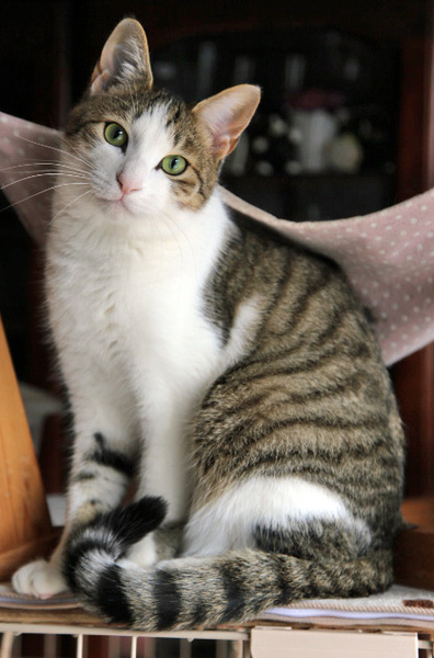 | 特徴(性格など) | キジ白の美男子、麦です。しっぽは真っ直ぐ長めでバランスの良い体型です。 3兄弟一緒に保護しましたが、麦はすぐにゴロゴロと甘え、抱っこもOK、トイレもすぐに覚えて早々に家猫修行を終了しました。 さて、里親募集始めよう!と思っていたころに血尿のための通院が始まりました。 原因を突き止めるための検査をしても膀胱炎でも尿結石でもないため通院を終えました。 今は療法食で様子を見ているところです。 トイレに頻繁に行ったりトイレが長いなどの尿路疾患の症状は全くなく、普通にオシッコをすると血尿(鮮血ではなく茶褐色の尿)というだけで本猫も元気いっぱい食欲旺盛です! お膝の上が大好きです。ちょこんと乗ってきてはゴロゴロ大音量で甘えます。 でも人に依存するほどの甘えん坊でもなく、甘えモードのスイッチは気分次第です。 性格ハナマル男子で、我が家の多頭の猫たちみんなと仲良く暮らしています。 小さい子は一緒に遊んであげて(遊ばれて?)、シニアとは添い寝、猫嫌いとは距離を保っています。 猫じゃらしが大好きでじゃらしの動きと一緒にぴょんぴょんと飛び跳ねて遊びます♪ 若い猫同士の追いかけっこやニャンプロレスは本当に楽しそうに豪快に遊びます。 食事の好き嫌いはなくドライもウェットも完食します。 今後も療法食で引き続きケアしてくださるご家族様いらっしゃいませんか~ ---医療処置--- ・ブロードライン(駆虫) ・3種混合ワクチン ・ウィルス検査(猫エイズ・猫白血病ともに陰性) ・去勢手術 ・マイクロチップ装着 |