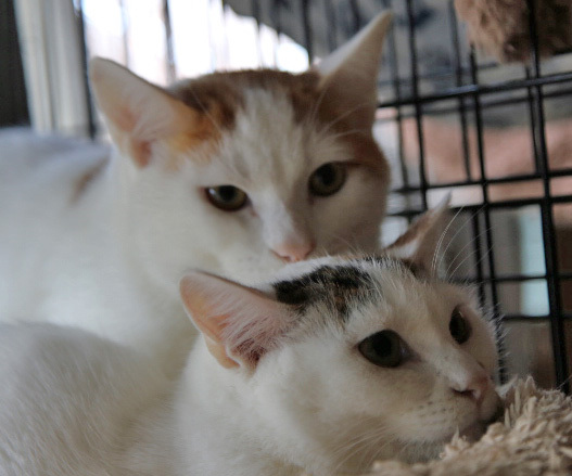 | 特徴(性格など) | もち、男の子:白が多めの茶白、しっぽ茶色のシマシマ長め、丸顔ちゃん。 あずき、女の子:白が多めの三毛、しっぽは3色のトラ模様にブチ入り、唯一無二のおしゃれ柄。 兄妹ともに慎重派。やっと人間を信用してくれるようになりました。 あずきは足元にスリスリと身体をくねらせながら甘えてくれて、一瞬の抱っこは出来ます。 もちは撫でられる専門。最近ゴロゴロ言って甘えられるようになりました。抱っこは今のところ好きではないです。 2匹ともに食欲旺盛でご飯の前はいっぱい甘えてくれます。 まだビビりなところがあり、これからもっと甘えるようになると思います。 その変化を楽しみながら2匹のペースに合わせて見守っていただけるご家族様を希望します。 猫じゃらしを振ると目をキラキラとさせて喜びます。兄妹の追いかけっこやにゃんプロレレスはとても楽しそうで見ていてほっこりします♡ 健康状態良好、食事の好き嫌いもなくドライもウェットも完食します。 お外生活の頃も2匹で寄り添っていました。これからもずっと一緒のお家を探しています。 ---医療処置--- ・ブロードライン(駆虫) ・3種混合ワクチン2回 ・ウィルス検査(猫エイズ・猫白血病ともに陰性) ・去勢・避妊手術 ・マイクロチップ装着 |