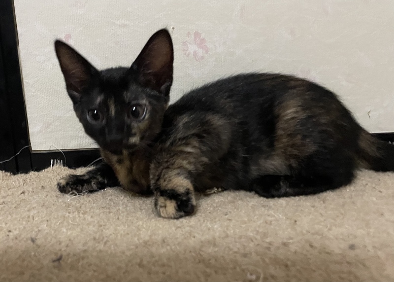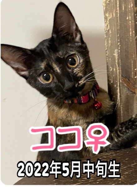 | 特徴(性格など) | 黒サビ 人見知りなく、おもちゃのネズミが大好き 美人で元気いっぱいです。 ツゥー♂と兄妹です♪ エイズ・白血病、共に陰性 |