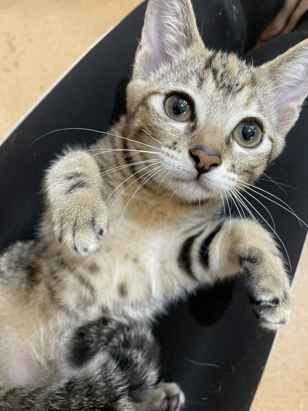 | 特徴(性格など) | キジトラ 人懐っこく、オモチャ大好き。 元気いっぱいです。 甘えっ子で天然ボーイ しおり♀と兄妹で仲良しなので 兄妹2匹で譲渡お願いします。 |