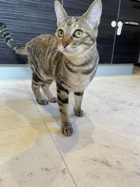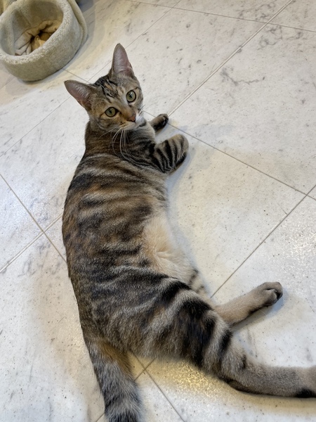 | 特徴(性格など) | サビトラ 美猫 人懐っこく、オモチャ大好き。 元気いっぱいです。 抱っこ好きで甘えっ子です。 さんぺー♂と兄妹で仲良しなので、兄妹2匹で譲渡お願いします。 エイズ・白血病、共に陰性 |