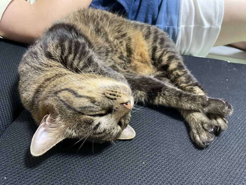 | 特徴(性格など) | キジトラ姉妹 ・短毛 クールですが甘えん坊で布団に入ってきて吸いながらモミモミする癖が抜けません ・長毛 なき声がとても可愛くて足に体当たりしてはお腹を見せて転がってきます |