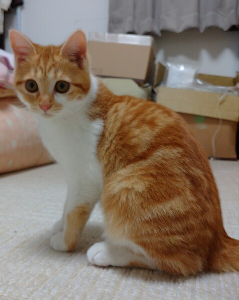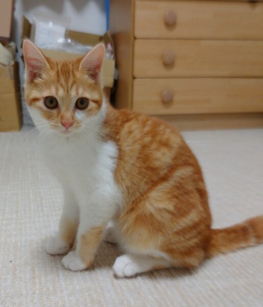 | 特徴(性格など) | 茶白 柔らかい毛並みのかわいい女の子です。 少し臆病ですが、慣れると甘えん坊です。 |