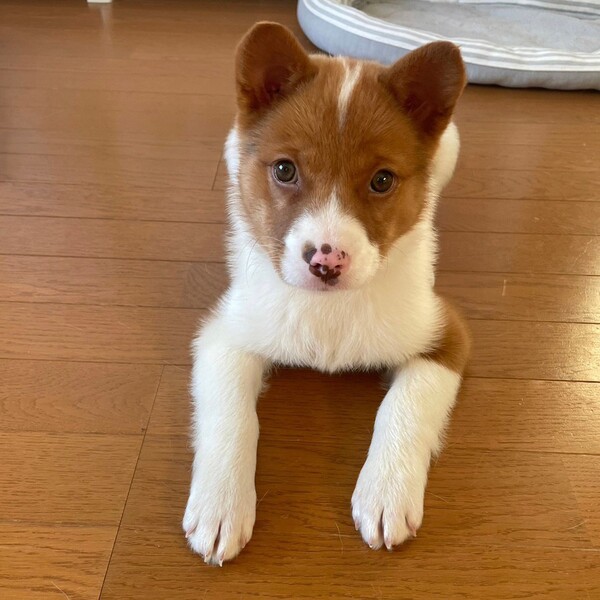 | 特徴(性格など) | 【名前】幸子 【預かり先】釧路 【生年月日】推定2022年11月下旬頃生まれ 【種類】MIX 【成犬時サイズ】中型犬(10〜15kg位まで)になると思います。 【毛色】レッド&ホワイト 【性別】メス 【避妊】適正時期になり次第飼い主さまで必ずお願い致します。 【ワクチン】近日接種予定 【駆虫】済み 【健康状態】元気ですが、保護後癲癇様発作あり。経過観察中。 【性格】とにかく人が大好きです!! シッポぶんぶん、耳をぺたーっと倒して駆け寄って来ます。初めて会う人にも同じです。落ち着いて撫でてるとお腹も見せてくれます。掃除機にもじゃれたり、暗い部屋などにもどんどん入って行き、臆病な感じはありません。時期的にも甘噛みや色々な所、物をカミカミしますが「ダメ!!」「痛い!!」と2、3回言えばやめます。 【トイレ】保護した翌日に2回失敗しましたがそれから1度も失敗していません。ゲージ内ではシートでして、フリーでは先住の犬達のトイレでしています。匂い嗅いで自分で探して行ってるので分かってるのだと思います。とても賢い子です。 【ケージ】留守番時5時間、就寝時はケージで過ごしています。誰もいなくなると鳴きますが同じ部屋で寝ると少し鼻を鳴らしますが諦めて寝ます。 |