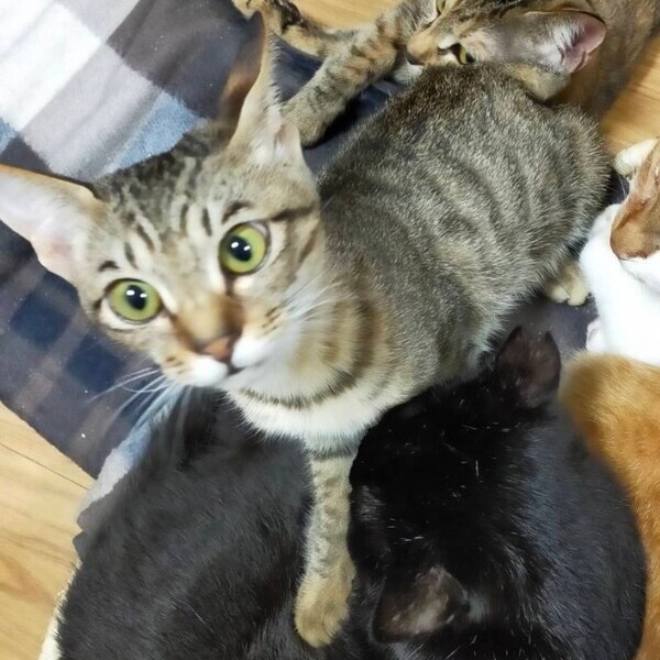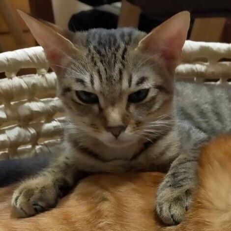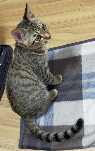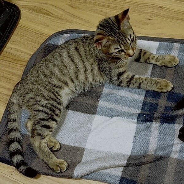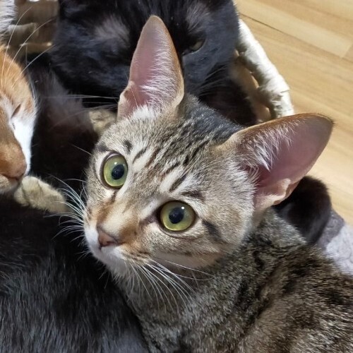 | 特徴(性格など) | 仮名:ふうか 年齢:2022年7月生まれ(生後6か月) 避妊手術時の体重:2.1kg 毛色:黒っぽいキジトラ 瞳の色:薄い緑色 尻尾:長くて真っ直ぐ 性格・特徴:お目目クリクリで、くっきりとまゆ毛の柄があるのが何ともかわいらしいです。 お姉ちゃんのなつに比べて体が小さめですが、食欲旺盛の元気印。 乳飲み子から人の手で育てられたためスリゴロの甘えん坊で人懐っこく、初めての保護宅でもすぐに遊び始める天真爛漫な子です。 先住猫ともすぐに打ち解け、おじさん猫たちをメロメロにさせています。 好奇心旺盛でおもちゃで遊ぶのが大好きです。 すばしっこく頭もいい、元気すぎるほどのおてんばさんなので、脱走防止をしっかり行ってくれるお宅を希望します。 システムトイレを使っており、一度も失敗はありません。 健康状態:猫白血病、猫免疫不全ウイルスともに陰性です。 ノミ・ダニ・お腹の虫の駆除済み。 たまに軟便になり、肛門に赤みがあることが多いですが、医師の診断では体質だろうとのこと。 整腸薬を常備していただき、調子が悪い時に与えるようにしてください。 大変馴れているので、薬を飲ませるのも簡単です。 |