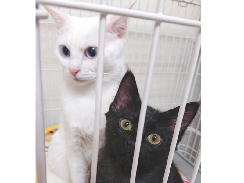 | 特徴(性格など) | ★名前:小雪(母猫2歳)小夏(生後3ヶ月) ★毛色:白(母猫)黒×シルバー長毛(子猫) ★避妊:未 ★健康状態:問題なし ★駆虫:済み ★ワクチン:済(1回目) ★猫エイズ:陰性 ★白血病:陰性 ★性格その他:ブルーアイの小柄な可愛い母猫『小雪』と長毛でゴージャスな子猫の『小夏』 とても仲良しなので、できれば親子一緒に飼ってもらえる方がいると嬉しいです。 |