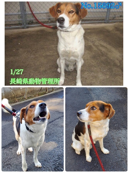 | 里親募集する理由 | ♡やや大きめの中型、人懐こく愛嬌たっぷりとっても可愛い甘えん坊なビーグルmix風の男の子ฅ•ﻌ•ฅ 歯が綺麗めで年齢は3歳前後位、体重は見た目の推定になりますが大体17キロ前後位に見受けられますฅ•ﻌ•ฅ 寂しく助けを待っています! 訳も分からず突然連れて来られてどんなに寂しく心細いか。一日も早く温かい家庭の中で過ごさせてあげたいです。 ⭐️県外、遠方の方でも譲渡の条件が合い、良縁に恵まれましたら里親になっていただけますのでどうぞ宜しくお願い致します! ※ ※長くなりますが犬猫と里親様の幸せの為にも、募集内容を熟読し、必ずご家族とよく相談をされた上、ご家族全員の賛同を得られてからのお問い合わせ をお願い申し上げます。 ⭐️外飼いでは無く、室内飼育で家族の一員として迎えて下さる方、「引き渡し方法」のところにあります【①〜のアンケート】にご回答と共にお問い合わせをいただけますよう、お願い申し上げますm(_ _)m 外飼いしていた元々の飼主が高齢で飼えなくなり、親族間をたらい回しにされ最終的に飼育放棄、保健所へ持込で1/27に長崎県動物管理所へ移送されてきました。 犬はどんな飼主でも信じています。 信じてきた飼主さんは居なくなり、あちこちに移動させられ何もかもが初めての知らない場所、環境の中で今どんなに心細く寂しい思いでしょうか( ; ; ) そんな悲しい状況のままでいたより保護されて良かったと考え、この子に幸せを、温かい本当の本物の家族を見つけたい!と願っております⭐︎⭐︎ (首輪はボロボロだった為、写真の首輪は付け替えた管理所の物です) 人懐こい性格花マル君♡誰が何処を触っても尻尾フリフリ甘えん坊のとーっても可愛い子ですฅ•ﻌ•ฅ お座り、おて、おかわりをします(^^) 無理もありませんが愛情に飢えており、不安や寂しさからか、人が側に居なくなると、こっちに来てよ〜と必死になって要求吠えをしています。 優しい職員さん方が怖くないよ、今度こそは幸せになれます様にと毎日触れ合いながら、一生懸命にお世話してくださっています。 職員さんが連れ出してくれるお散歩では、嬉し楽しそう(^^)出だしは大喜びで飛び出しますが、それほどリードの引きも強くありません。 ※でも、急な物音や知らない場所にビックリして怖がって、咄嗟に逃げようとする可能性も大いにあり得る事だと思いますし、その時の力、引きの強さも想定し、突然の走り出しや高い塀や壁・柵の飛び越え・急な方向転換や首を振って後退りからの首輪抜け、胴輪抜けにはご用心です!! まだ呼び戻しも覚えていないので、もし逃がしてしまったらピューっと走って行ってしまうタイプかもしれません!(>_<)もし逃がしたらもう捕まえられない!というようにお考えくださいm(_ _)m ※繰り返しになりますがどんな子であっても、慣れてきても、常に、脱走・逃走には充分な注意と最大限の配慮をお願いしております! 若いこの子のペースや体力をみながら、躾や毎日朝晩のお散歩、トイレなど運動の時間をしっかり取ることの出来るご家庭を希望しております♡ 人間が焦らずにゆっくり見守りながら、愛情を持って接し、しっかりとお散歩にも連れ出して行けば、この子はきっと新しい家庭に馴染んでいけると、本当は思い切り甘えて目一杯遊んでほしいのだと思います。 辛かった過去があるという点も踏まえ、人は怖くないんだよと、ずっと人を信じてくれる様に、広い心でドンとこい^_^と仰って頂ける方、この子がこの先安心出来るように、尻尾フリフリ♪ニコニコの笑顔にしてくださる方、いらっしゃいませんか? どうぞ宜しくお願い申し上げますm(_ _)m ⭐️必ず室内飼育で、譲渡後速やかに病院受診、健康診断、(血液検査、尿便検査、ノミダニ・フィラリア予防やシャンプー等)去勢手術、混合ワクチンをする事が可能な、なるべくお留守番が少ない、沢山優しくスキンシップやコミュニケーションで触れ合っていただけるご家庭。 ⭐️フィラリア予防実績、混合ワクチン、狂犬病予防接種の有無は不明です。 フィラリア陽性の可能性も有り得る事となります(>_<) ⭐️室内でのトイレの躾も1からとなります。 未去勢で片足を上げて排尿します。 何かと手がかかり大変ですが(L字型のトイレスペースやマナーベルト、ペットシートを用意など)覚悟と根気・理解で受け入れて下さる方m(_ _)m ※譲渡後はお早めの去勢手術、その際に歯石が有れば除去も一緒にお願いしますm(_ _)m ⭐️出来れば中型犬の飼育経験があり愛情を持って接することが出来る方、毎日朝晩のお散歩や運動、スキンシップやコミュニケーションに充分時間をあてられる方、 場合により、トレーナーさんに依頼やトレーニング教室等、犬の為にもしっかり考えて対応してくださる方。 何卒宜しくお願い致します。 以上の点を踏まえ、この子の置かれている状況、寂しかった、傷ついているであろう心をご理解の上、全て受け入れ、寄り添いながら愛情