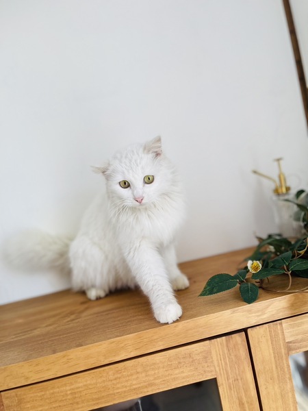 | 特徴(性格など) | 真っ白の長毛です。 人懐っこく、すぐに近寄ってきてなでで~とスリスリしてきます。 |