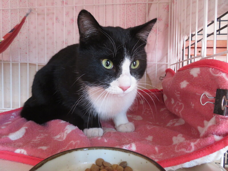 | 特徴(性格など) | 【仮名】はち君 【外見】きれいなハチワレ。しっぽは長い。 【性格】人懐こく素直で穏やか。優しい性格。 【しつけ】トイレ・ケージしつけ |