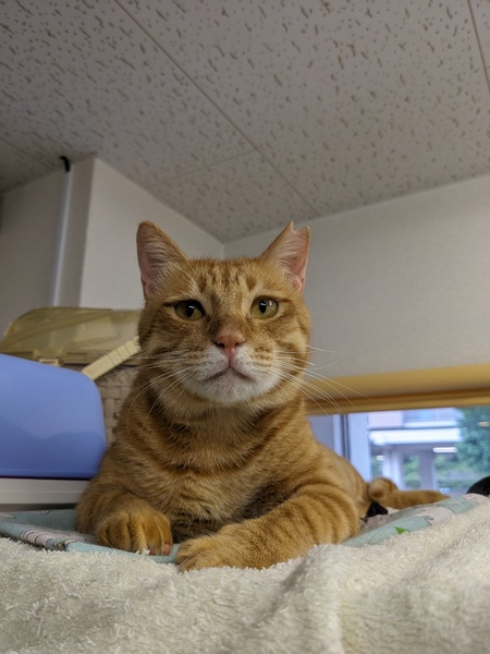 | 特徴(性格など) | おしゃべり茶トラ君 見てて飽きない、お茶目な子です。 |