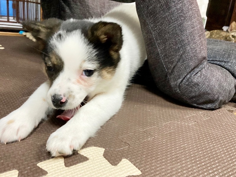 | 特徴(性格など) | 【仮名】カンカン 【生年月日】推定2022年12月下旬頃生まれ 【種類】MIX 【成犬時サイズ】中型犬(10〜15kg位まで)になると思います。 【毛色】セーブル&ホワイト 【性別】メス 【避妊】適正時期になり次第飼い主さまで必ずお願い致します。 【ワクチン】済み 【駆虫】済み 【健康状態】良好。 【性格】甘えん坊で自由な性格です。トイレなど短時間離れただけでも毎回喜んで迎えてくれます(^^) 先住犬や猫にはびびらずです。 ぬいぐるみやおもちゃが好きです! 一緒に預かり中のアルとは喧嘩三昧の毎日ですが一緒に寄り添って寝てます。 【トイレ】活動範囲を広げると成功率が下がりますがおしっこは7割くらいできてます。トイレトレーニング続けます! 【ケージ】就寝時やお留守番、ごはんのときケージで過ごしています。 |