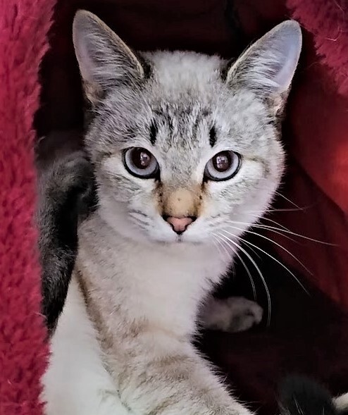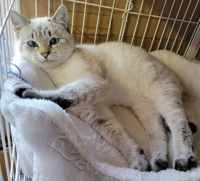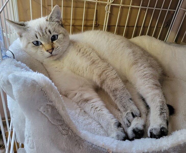 | 特徴(性格など) | 仮名: 蒼(あお)くん (オス) 毛色: ラグドール風、ブルーアイ、両耳が焦げ茶色 性格: 人馴れしている甘えん坊です。 とても落ち着いていて動物病院でも臆する事もなく、されるがままにしています。 構って欲しい時に呼ぶ声はソプラノです。 普通に撫でて抱っこも出来、1人でお留守番も可能です。 両方の耳と背中の一部が焦げ茶色に変って来ています。 今後はもう少し全体に色が濃く出てくるかと思います。 駆虫済 5種ワクチン接種済 猫エイズ・白血病ウィルス検査はともに陰性 |